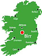 Take N18 going south to Limerick. From Limerick take N7 through Nenagh and on to Roscrea. From Roscrea take N62 to Birr.